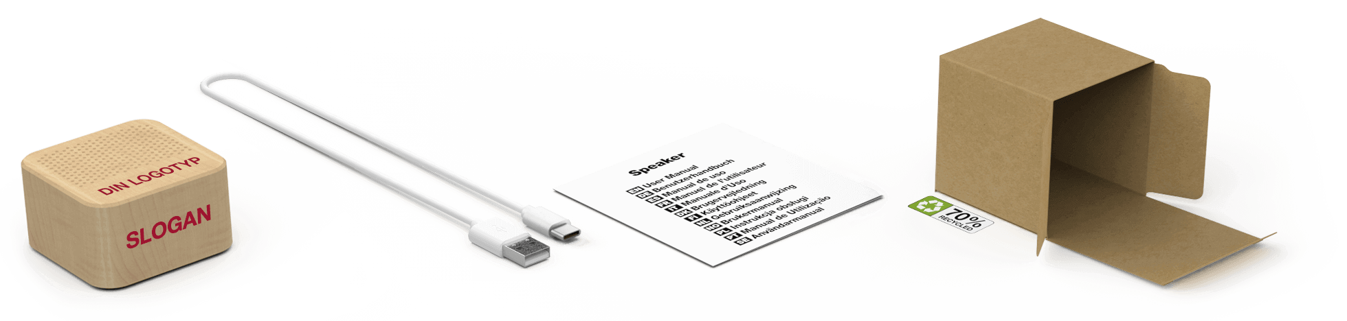Den här vackra Bluetooth®-högtalaren är tillverkad av naturligt lönnträ och är mer miljövänlig än alternativ helt i plast. Den är kompatibel med alla större märken av telefoner och surfplattor med Bluetooth®-anslutning. Så oavsett vilken enhet dina mottagare använder kan de njuta av sina favoritlåtar var de än befinner sig. Vi erbjuder också ett stort urval av högtalartillbehör, inklusive karbinhakeclips för enkel resa och en magnetlåda för smartare presentation.