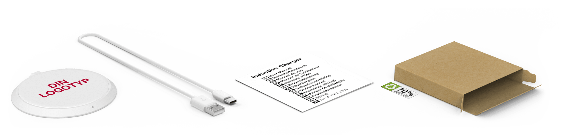 RoHS Denna produkt överensstämmer helt med RoHS-direktivet (EU Restriction of Hazardous Substances).Trådlösa laddare med din logotyp