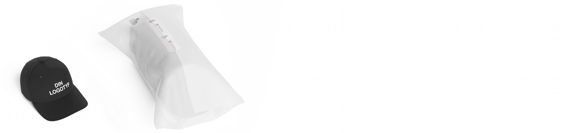 Förpackade i genomskinliga påsar gjorda av växtbaserat material som är biologiskt nedbrytbara och mer miljövänliga än vanliga plastpåsar.