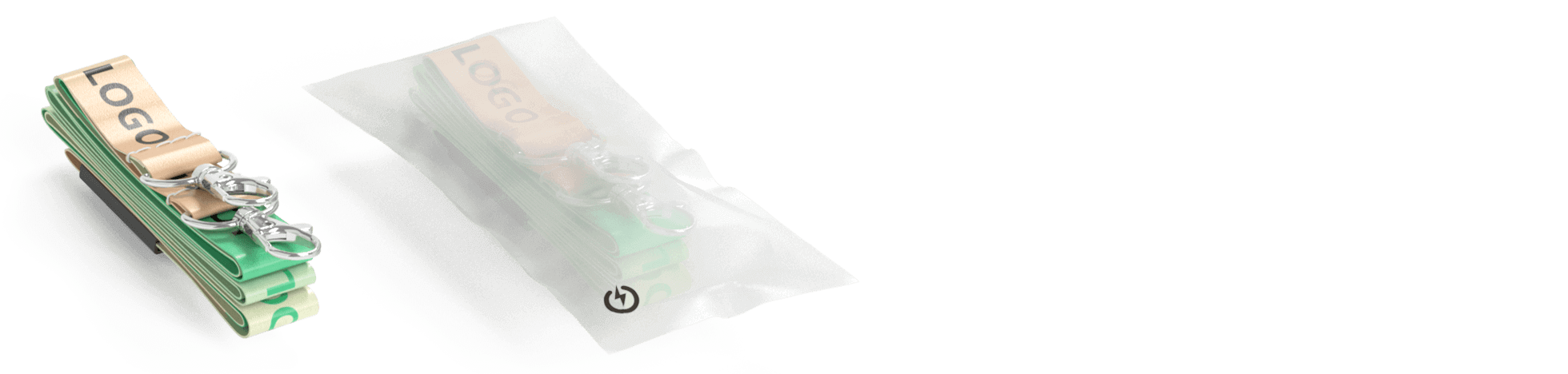 Förpackade i genomskinliga påsar gjorda av växtbaserat material som är biologiskt nedbrytbara och mer miljövänliga än vanliga plastpåsar.