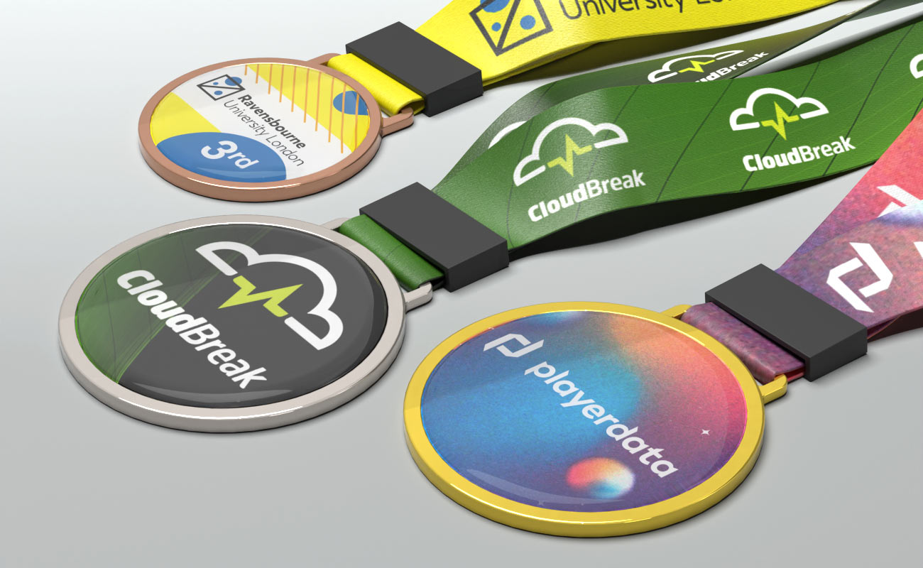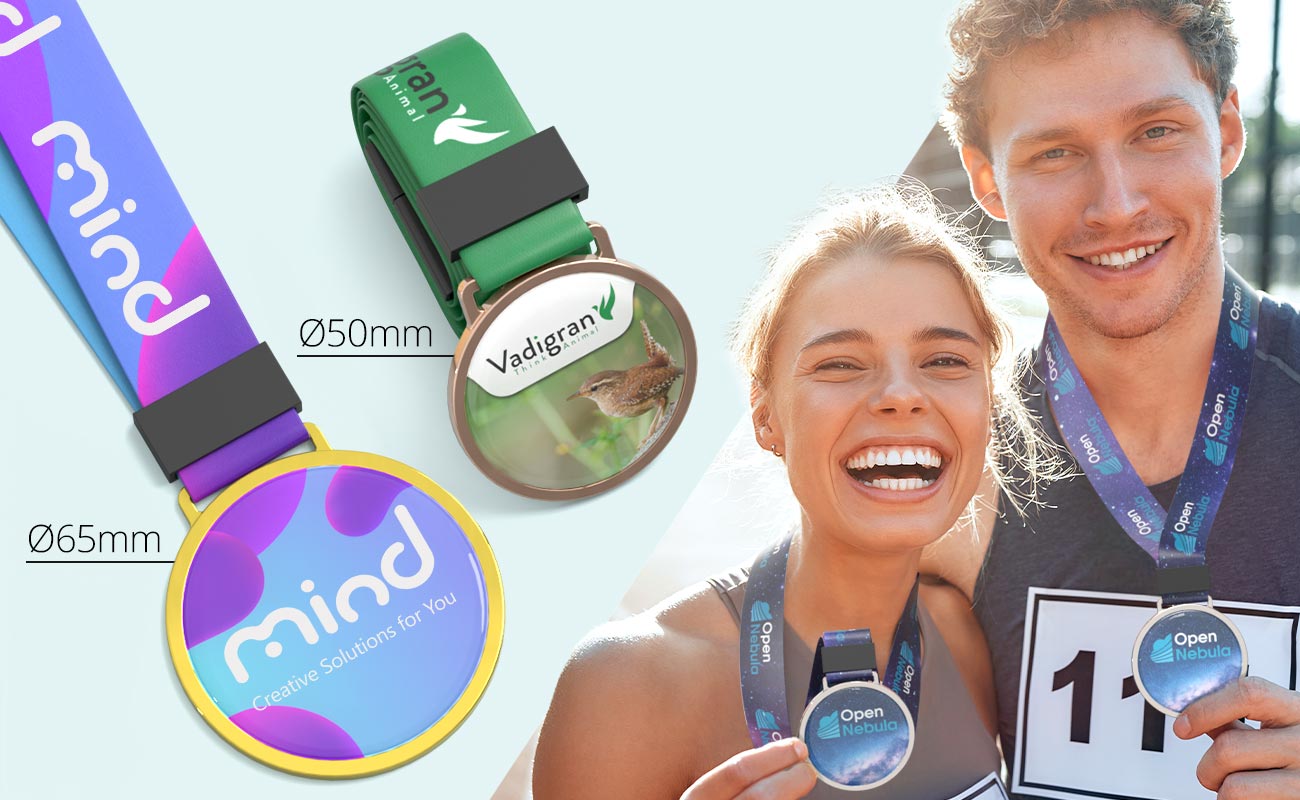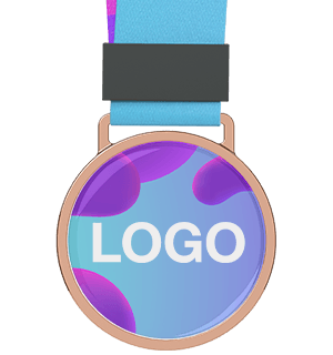 The Elite is a premium custom medal created to showcase your brand or event in a bold and refined way. It features high-quality photo printing that brings your design to life with sharp detail, smooth gradients, and vibrant full-colour reproduction. At the centre of the medal is a dedicated branding area, where your logo or artwork is displayed clearly and precisely. The accompanying strap is also ready to be branded. The medal design is protected by a clear resin coating, giving it a polished, glossy finish while helping to guard against scratches and general wear. Elite medals are available in two sizes – 50mm or 65mm in diameter – allowing you to choose the best fit for your event. You can also select from gold, silver, or bronze finishes, making them ideal for awarding 1st, 2nd, and 3rd place achievements.