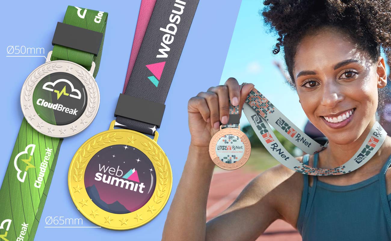 Podium är vår eleganta specialmedalj som är utformad för att lyfta fram ditt varumärke eller evenemang med levande fototryck och en snygg dekorativ kant. Medaljens mitt har ett dedikerat varumärkesområde, vilket gör att din logotyp eller konstverk kan reproduceras med exceptionell detalj, inklusive lutningar, fina linjer och fullfärgsdesign. Ditt varumärke förseglas sedan under en klar hartskupol, vilket ger medaljen en blank finish samtidigt som konstverket skyddas mot repor och vardagligt slitage. Podiummedaljer har också en snygg yttre trimdetalj som skapar en iögonfallande ram som drar uppmärksamheten till logotypen i mitten. Kombinationen av dekorativa kanter och levande tryck ger medaljen ett professionellt premiumutseende som mottagarna kommer att vara stolta över att få. Finns i två storlekar - 50 mm eller 65 mm omkrets Podiummedaljer kan skräddarsys för att passa storleken på ditt evenemang. Du kan beställa från ett urval av guld-, silver- eller bronsfinish, vilket gör dem perfekta för att erkänna prestationer på 1:a, 2:a och 3:e plats.