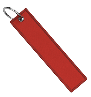 JetTag Nyckelring är gjord av hållbar Polyester som är designad att broderas med din logotyp. Nyckelringsöglan är fäst med den robusta metallniten och kanterna på JetTag har en sydd trimning. Vi kan trycka din logotyp, slogan, hemsida och mer, på båda sidorna. Denna stil av nyckelring är också känd som en "flight tag". Hör av dig idag för information så som priser, leveranstider och gratis varuprover.
