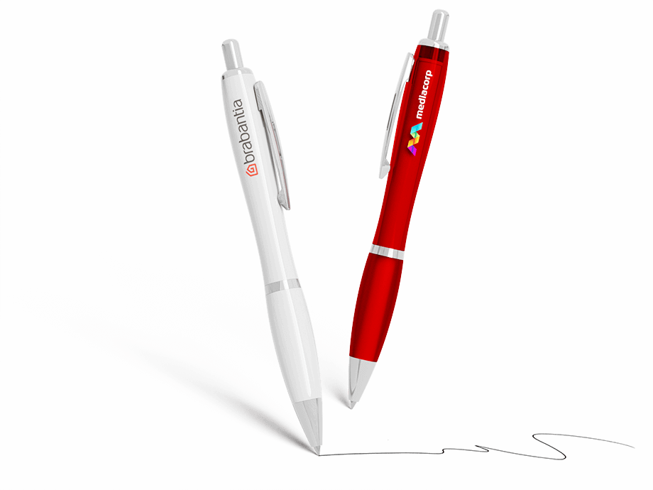 Curve kulspetspennor är några av de mest effektiva och mångsidiga reklamartiklarna och har visat sig vara en hit för mässor, marknadsföring av evenemang, företagsgåvor och mycket mer. De bevisar att marknadsföringsartiklar inte behöver vara stora eller dyra för att göra jobbet.