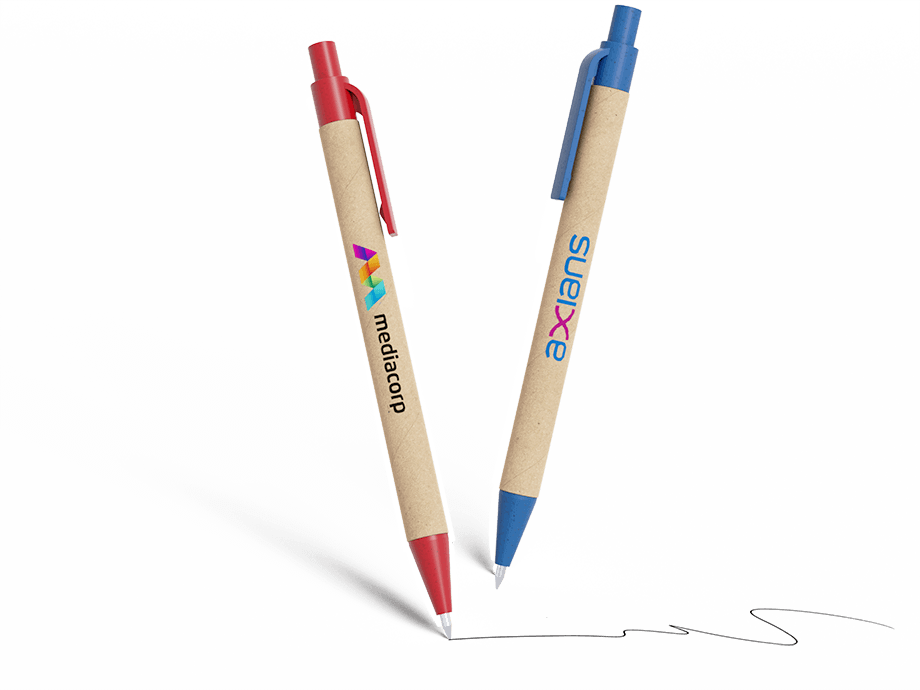 Ditto Kulspetspenna är en miljövänlig profilprodukt som kan användas i flera år framöver. Kroppen är gjord av återvunnen hållbar kartong och är designad för att kunna visa upp din logotyp i stil. Spetsen kan tryckas ut och in med hjälp av toppen av pennan och den har även en praktisk klämma för att lätt fästas vid en anteckningsbok eller papper.