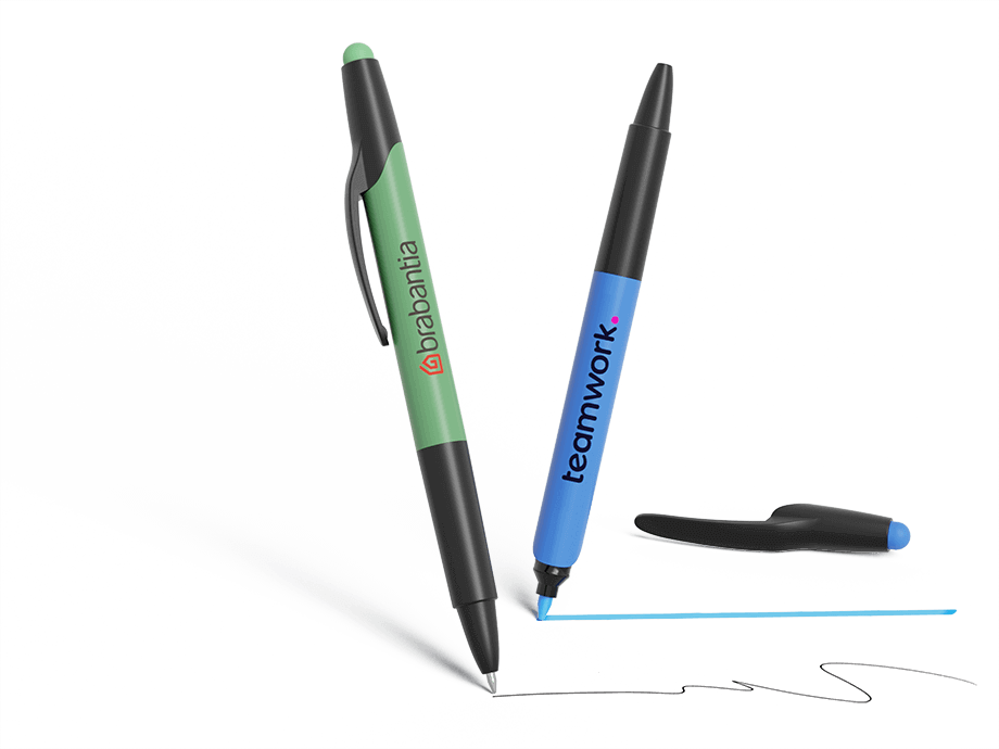 Glow kombinerar en kulspetspenna, överstrykningspenna och styluspenna i en fantastisk och användbar modell. De två dedikerade varumärkesområdena kan tryckas med din logotyp, slogan, hemsida och mer. En extremt populär giveaway som kommer att användas i många år framöver. Hör av dig redan idag angående priser, varuprover och information om våra snabba leveranstider.