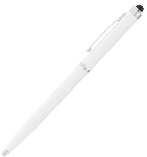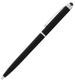 Sleek kulspetspennan är en funktionell modell som har en pennspets att använda på dina pekskärmsenheter. Du kan rotera toppen av pennan för att avslöja och dra tillbaka kulspetsen. Det dedikerade varumärkesområdet är redo att Fototryckas med din logotyp. En fantastisk modell som kommer att användas dagligen, vilket ger dig stor varumärkesexponering.