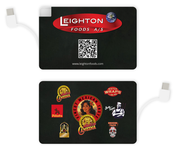 The Card är en liten powerbank som ger ett minnesvärt intryck. Det är den perfekta gåvan för mässbås eller anställda för att säkerställa att deras telefonbatteri förblir fulladdat och redo för viktiga telefonsamtal och möten. Enheten har en mikro-USB-kabel med både lightning- och USB-C-adaptrar och är kompatibel med alla större märken av mobila enheter, från telefoner till surfplattor.