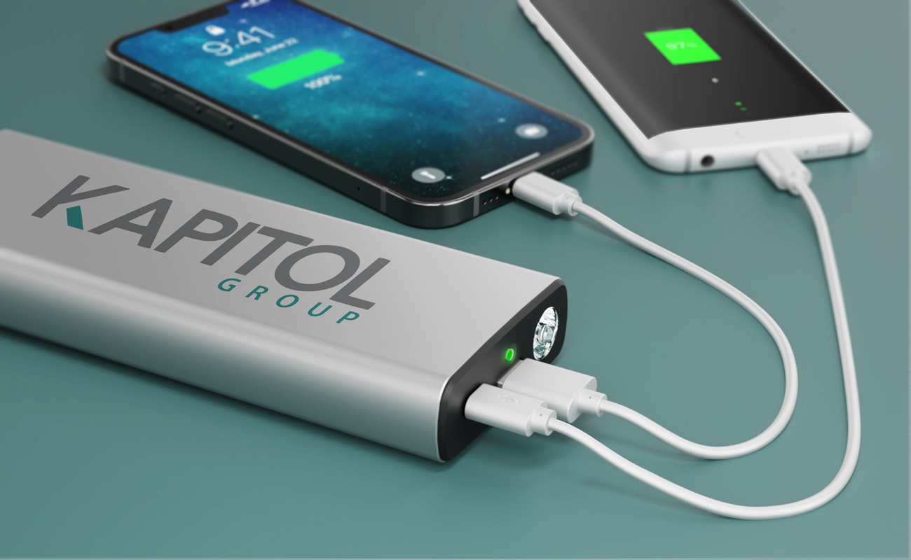 Ingång: 5V/1A, Utgång: 5V/1A. Batterityp: Litiumjonbatteri