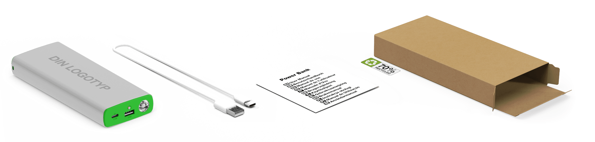Ingång: 5V/2A, Output: 5V/3ABatteri typ: Lithium-ion