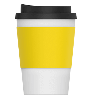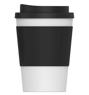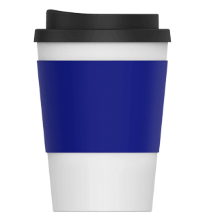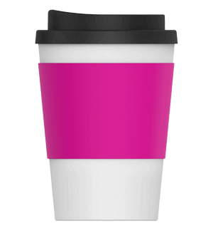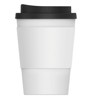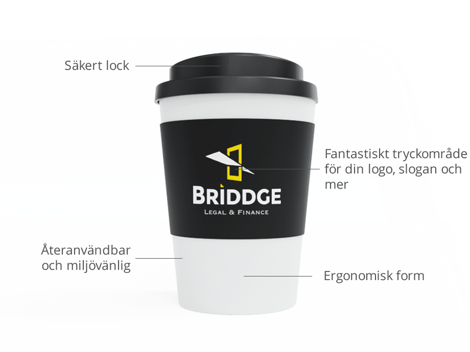 Det generösa varumärkesområdet på silikonmugghylsan håller din logotyp framme och i centrum. Denna exponering, i kombination med vårt exakta och levande tryck, kommer att göra din design omöjlig att missa och en riktig höjdare. Du kan också välja färg på mugghylsan från vårt utbud av 8 fantastiska färger för att anpassa den till ditt företags färgschema och få din logotyp att framträda! Den klassiska vita kroppen och det svarta locket ger den perfekta bakgrunden för att visa upp dina anpassade varumärkesalternativ.
