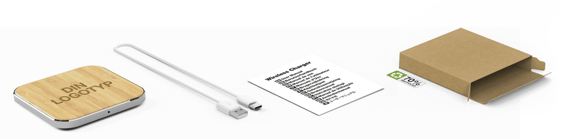 Laddaren har en USB-C-strömkabel för tillförlitlig anslutning och är kompatibel med alla Qi-aktiverade enheter, inklusive smartphones och surfplattor, vilket säkerställer att dina kunder och personal håller sig uppladdade hela dagen.