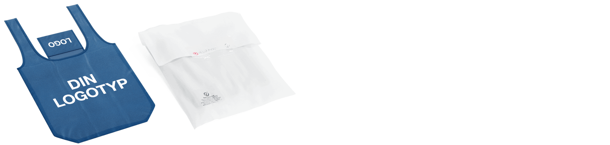 Förpackade i genomskinliga påsar gjorda av växtbaserat material som är biologiskt nedbrytbara och mer miljövänliga än vanliga plastpåsar.