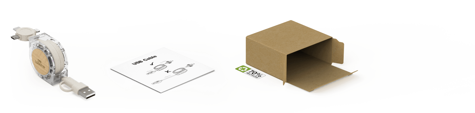 Kabeln är tillverkad av bioplast från vetehalm och erbjuder en miljövänlig lösning som ligger i linje med ditt varumärkes hållbara praxis. Utskriftsområdet är tillverkat av FSC-certifierat trä för att fortsätta hållbarhetstemat. Fyll i en snabb offert idag för att få en personlig prislista och börja skräddarsy dina Motion Wood-nav!