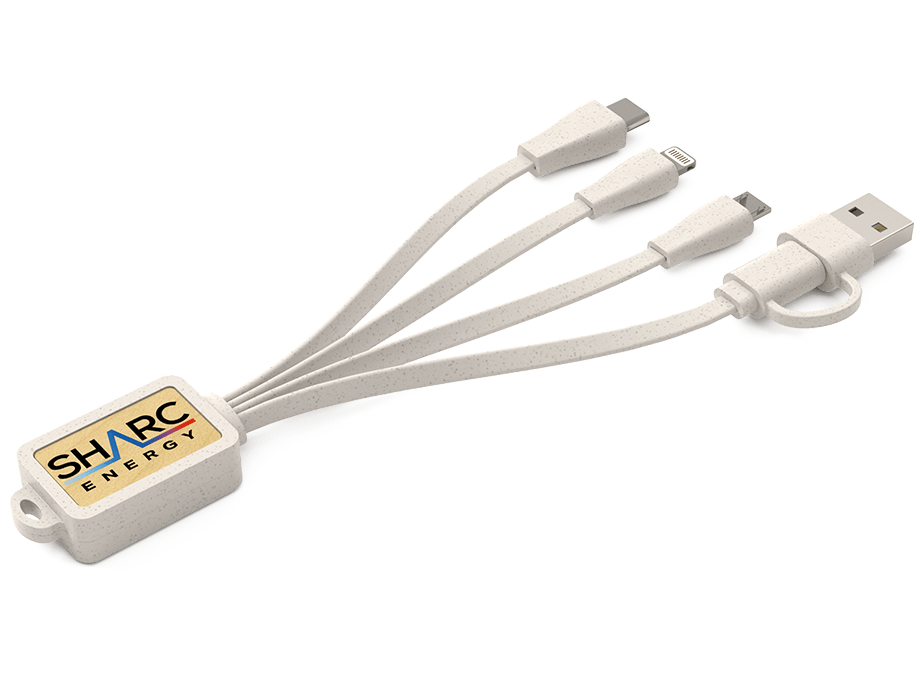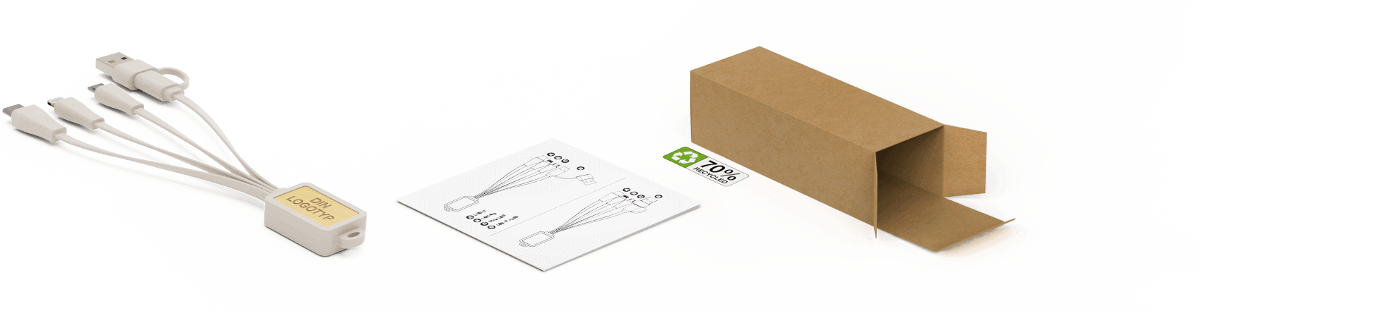 - Med standardkontakter för USB, USB-C, Lightning och Micro USB