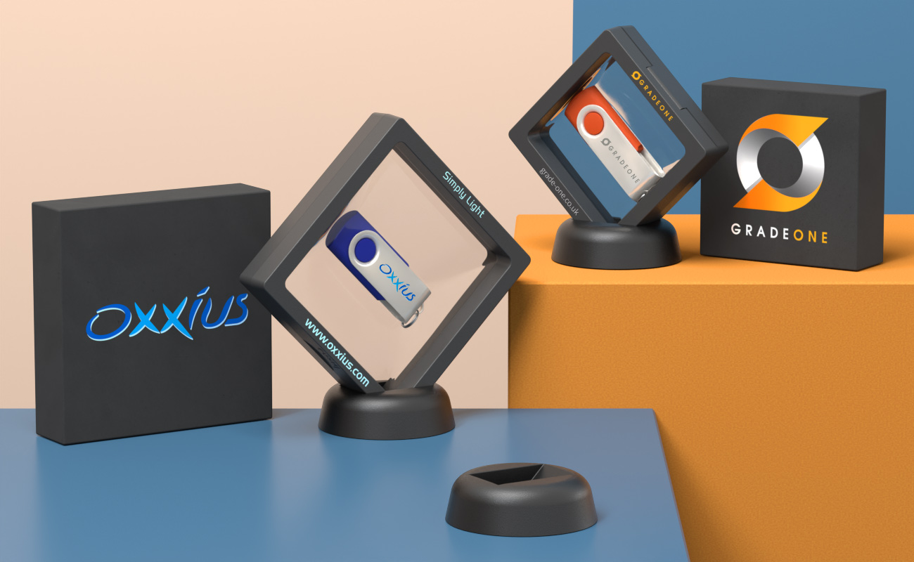 Our Snap Frame Small accessory is an eye-catching way to present and give away your custom branded promotional products. You can open and close the box via the secure clip. The transparent plastic film holds the product in place, and the cardboard outer-edges can be branded with your logo and more. The Snap Frame Small comes in a cardboard box sleeve that can also be branded with your logo.Se bildgalleri
