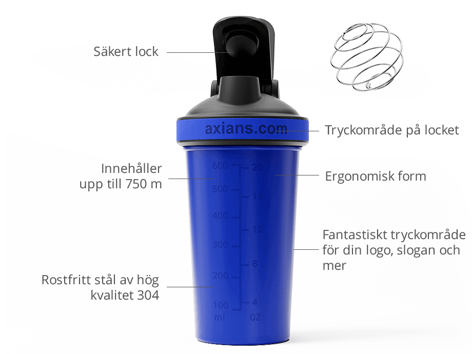 RoHS Denna produkt överensstämmer helt med RoHS-direktivet (EU Restriction of Hazardous Substances).Helt anpassningsbar protein shaker-flaska