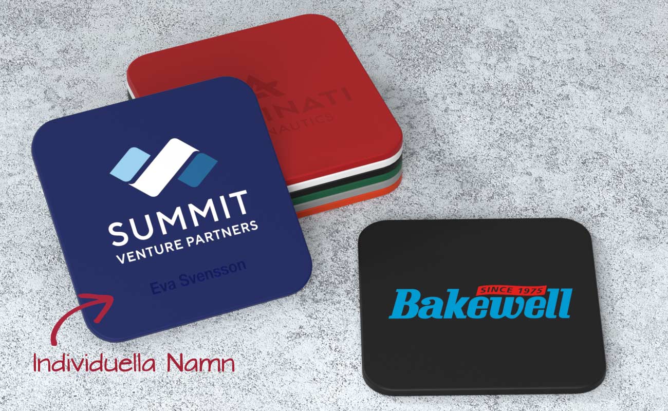 Gravyren skapar en permanent form av namnmärkning. Det är perfekt fär sportsklubbar och skolor, och undviker möjlig förväxling av Vattenflaskor och Resemuggar under träning eller tävlingar. Varje individuellt namn kan tryckas i kombination med er logoty och slogan på Drinkware-produkten.