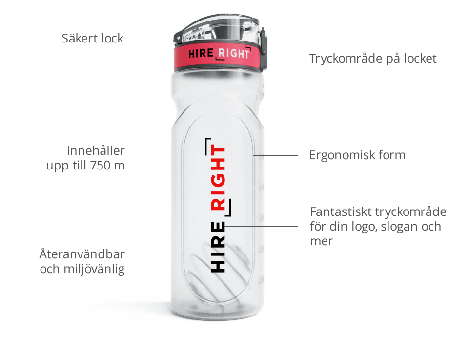 Gravyren skapar en permanent form av namnmärkning. Det är perfekt fär sportsklubbar och skolor, och undviker möjlig förväxling av Vattenflaskor och Resemuggar under träning eller tävlingar. Varje individuellt namn kan tryckas i kombination med er logoty och slogan på Drinkware-produkten.
